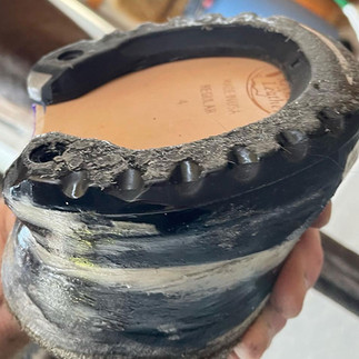 Compatibility of density, hoof to appliance is HIGHLY disregarded. I WANT an appliance to WEAR OUT. Otherwise, it’s WEARING OUT THE HOOF. These rubber-aluminum hardness-shore match up with these weak type feet. Compression thru the walls for support w/ any farriery mechanics needed with a wearable bearing surface. RESETS are NOT YOUR FRIEND. They are TOO HARD-DENSE in compatibility of structure.