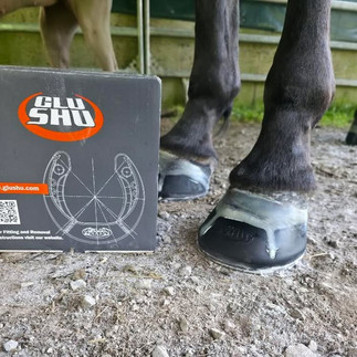“I would like to share with you my recent Glushu user Buba. He is 19 years old, and the client wants to keep him in a group housing and out of nailed shoes. Unfortunately, the horse is at risk of injury because he doesn't have hooves suitable for barefoot walking. I was aware of Glushu glue on horse shoes and thought they would be a good solution.