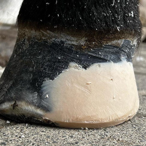 The GluShu was ground in the toe so that the tip of the coffin bone does not get any pressure from below.